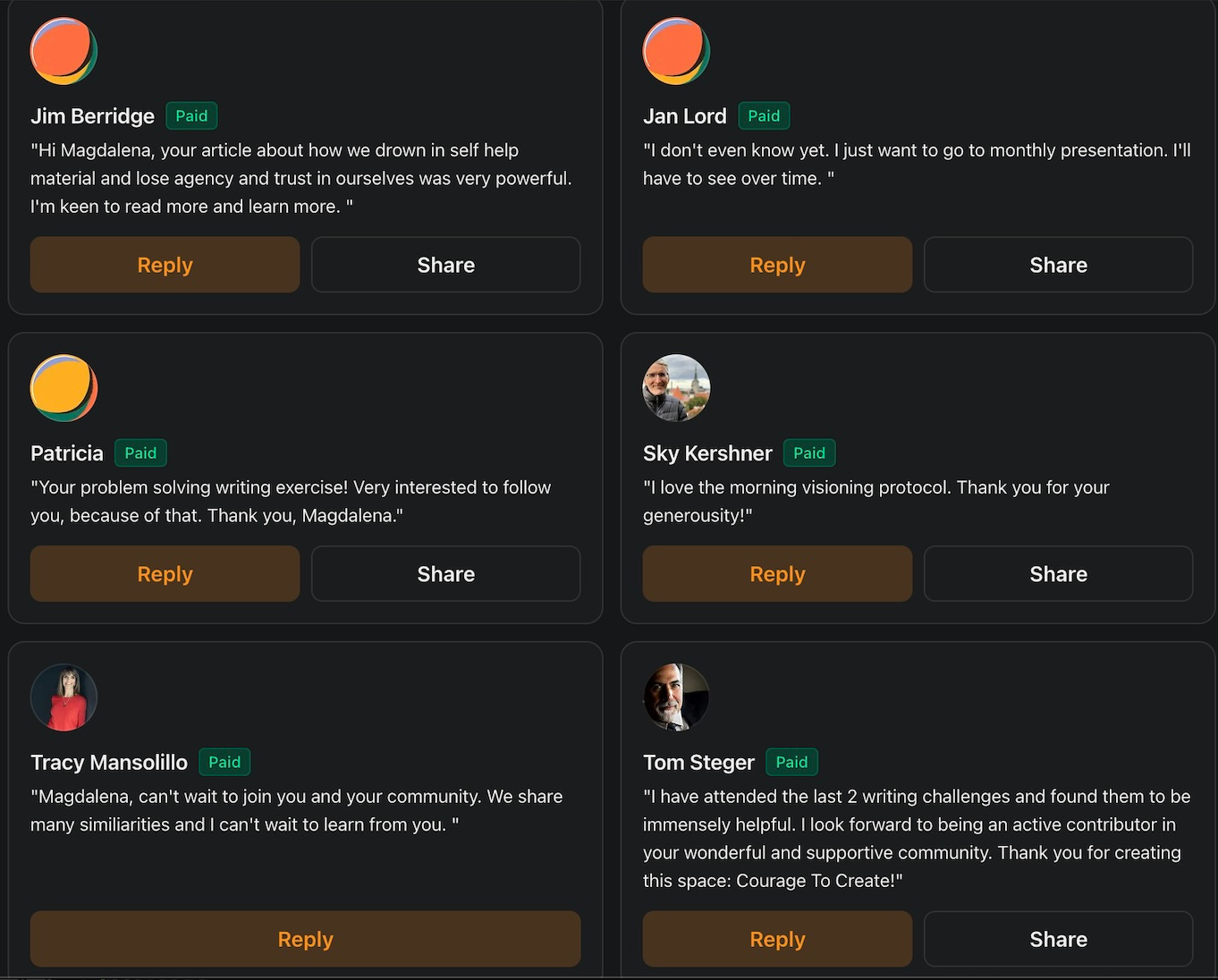 I am a big fan of Magdalena’s writing. The Courage to Create Community project is such a great idea. I find it very interesting as a place to discover new ideas, inspiration, and people.